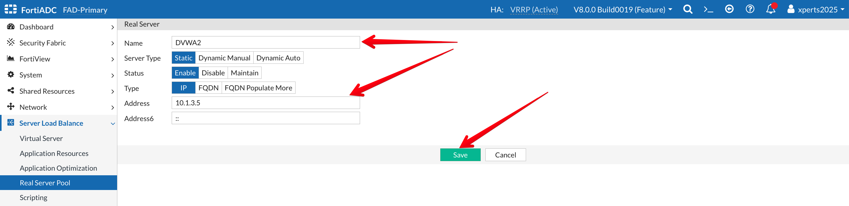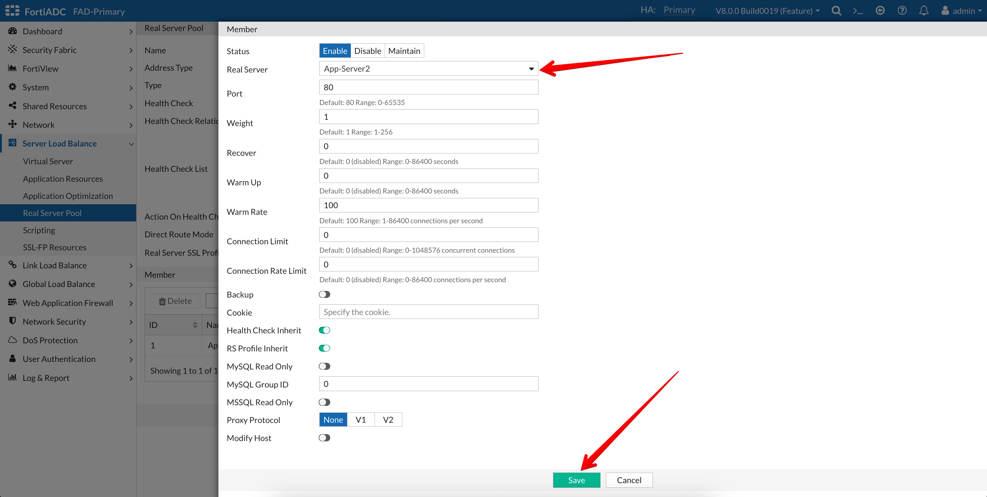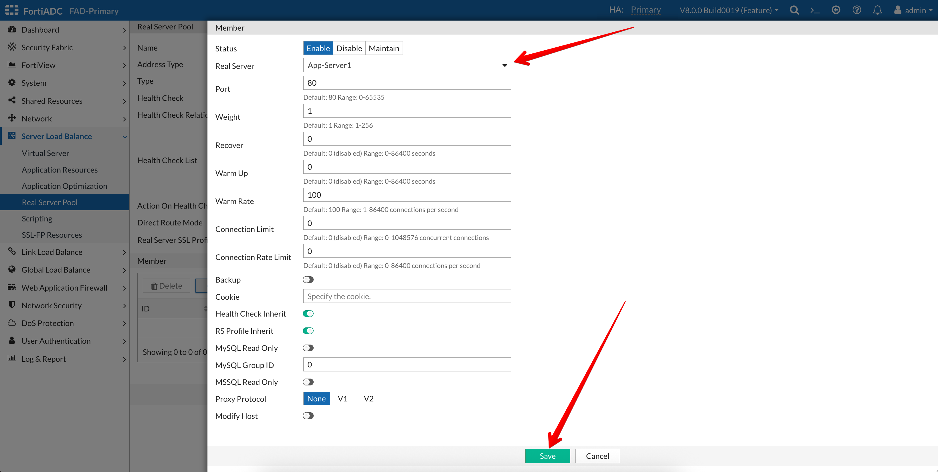 - Go to Server Load Balance → Real Server Pool