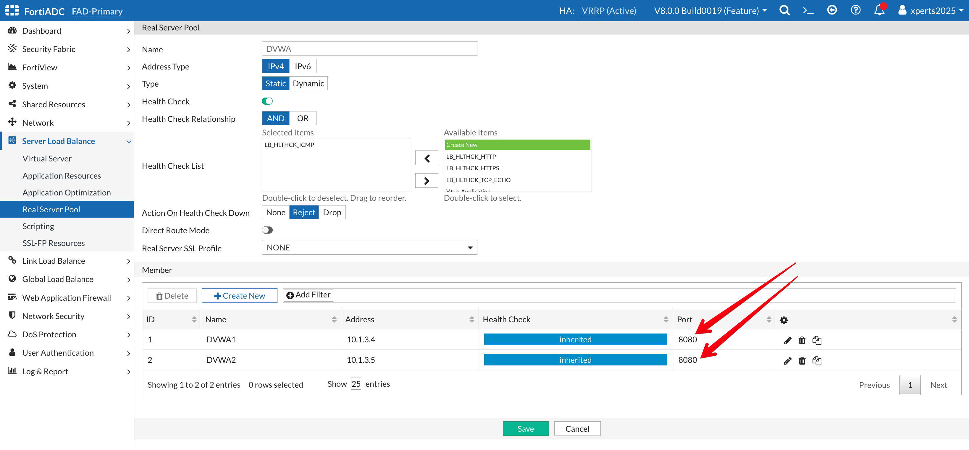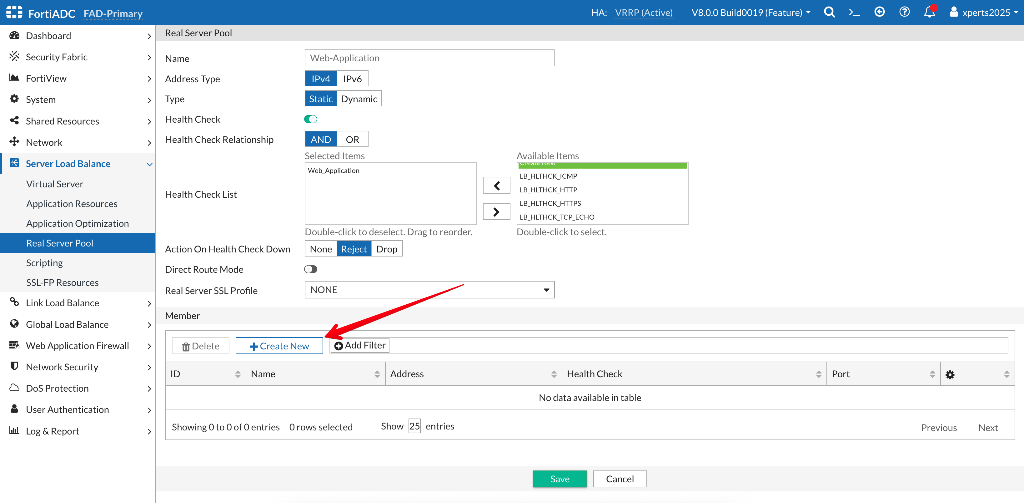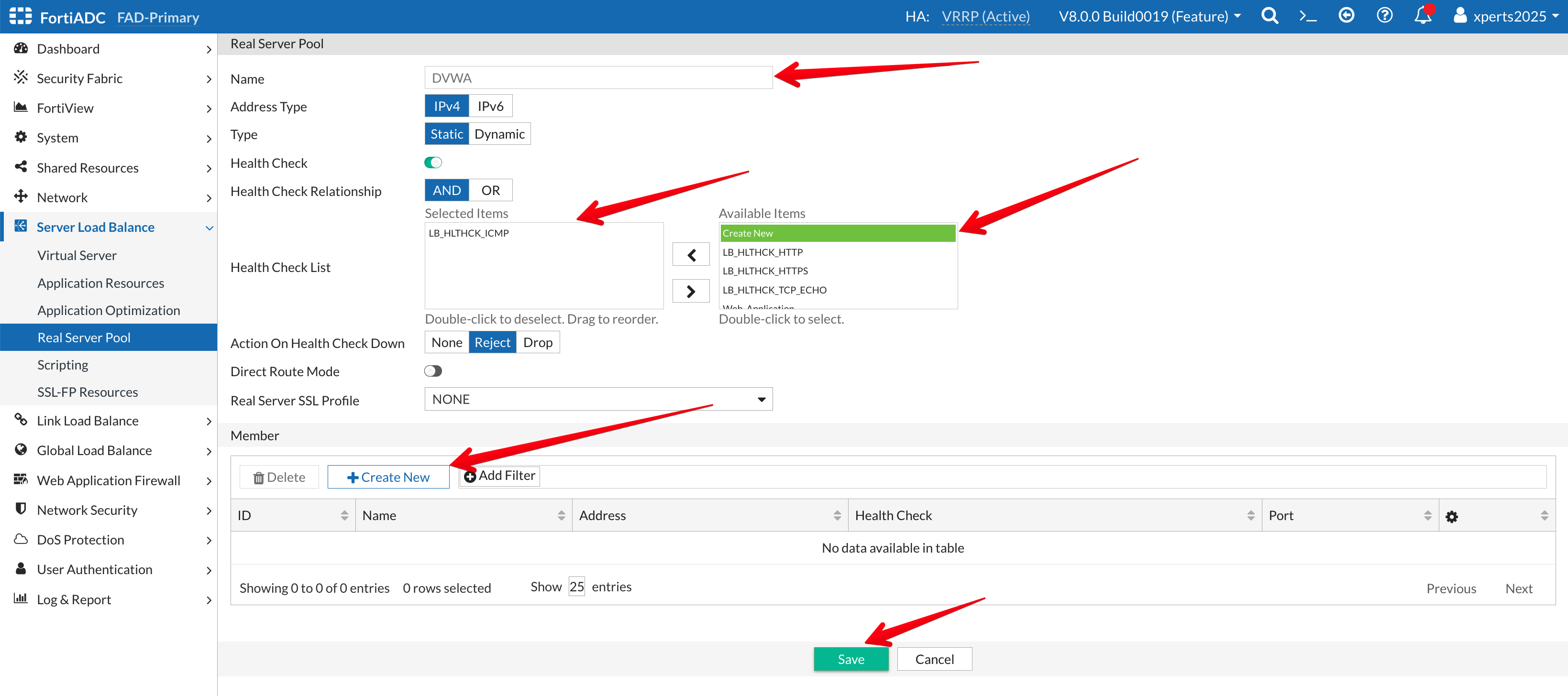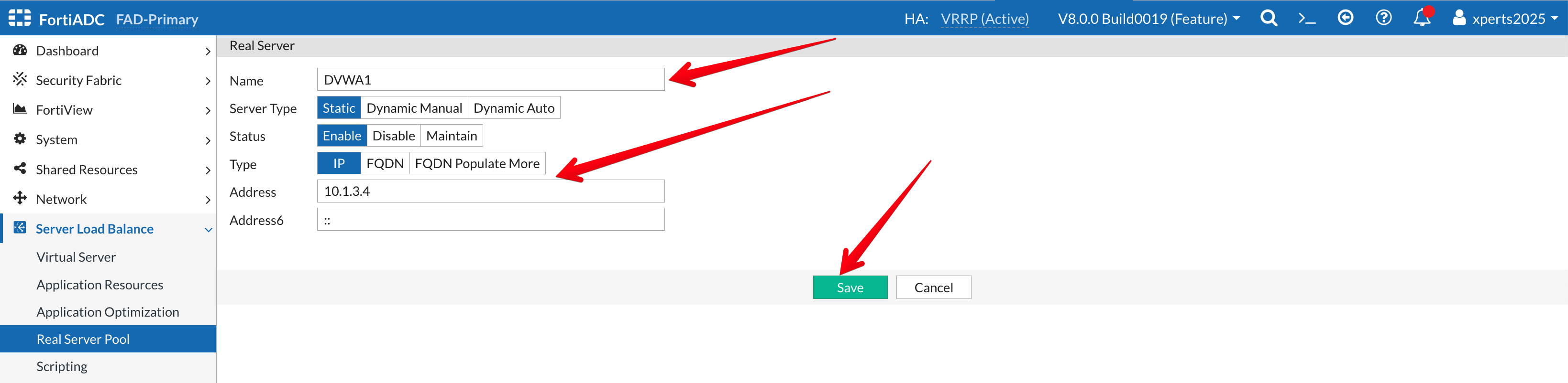 - Go to Server Load Balance → Real Server Pool