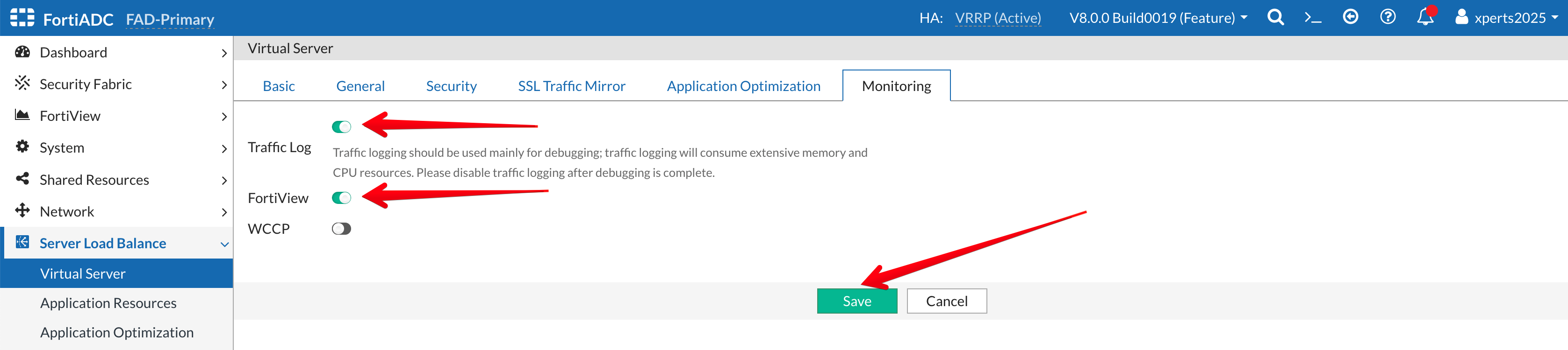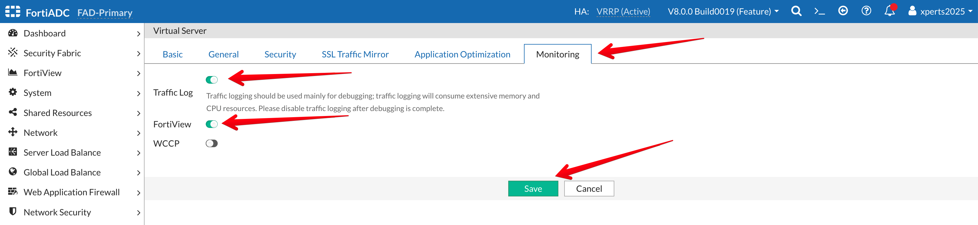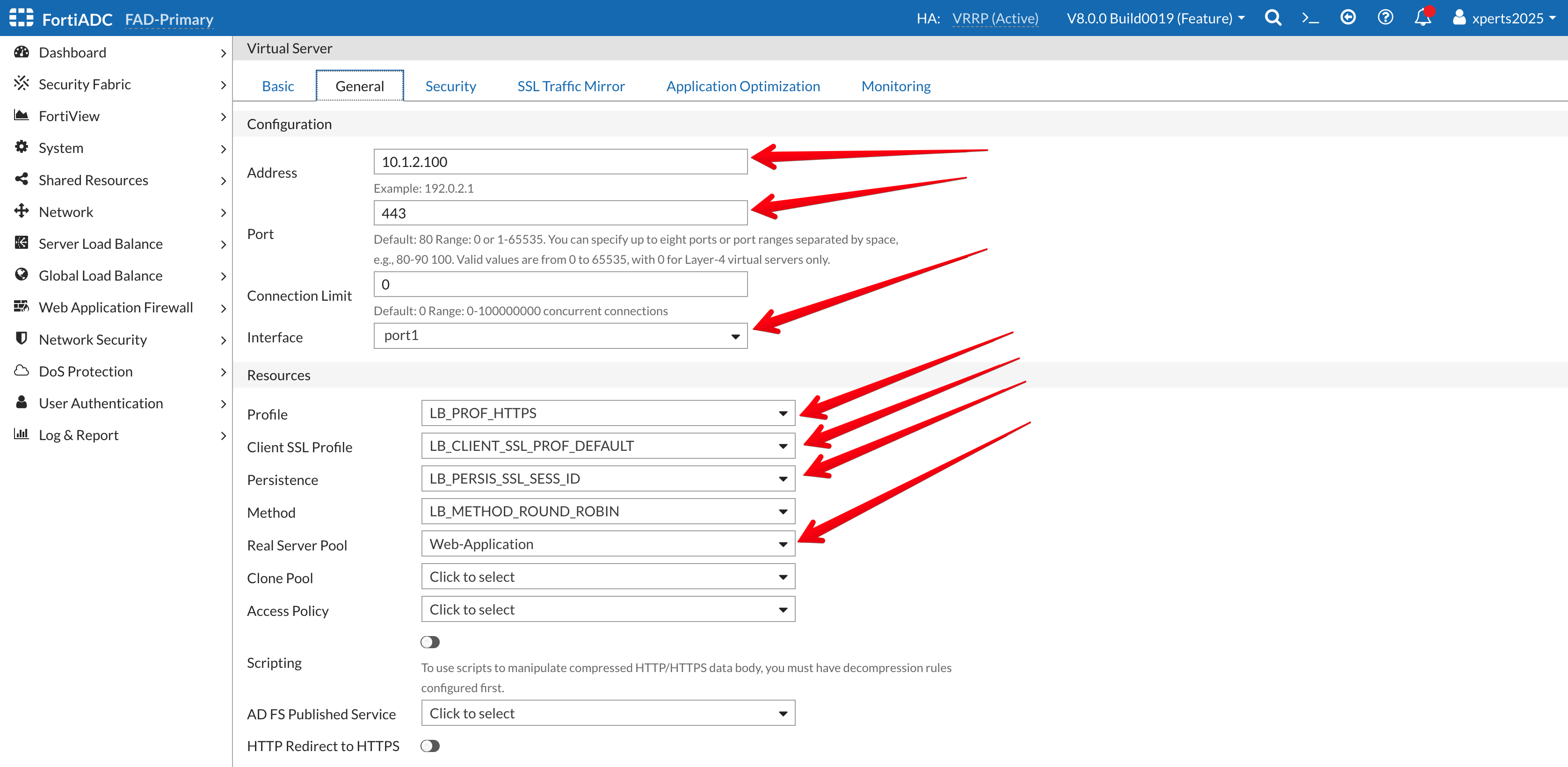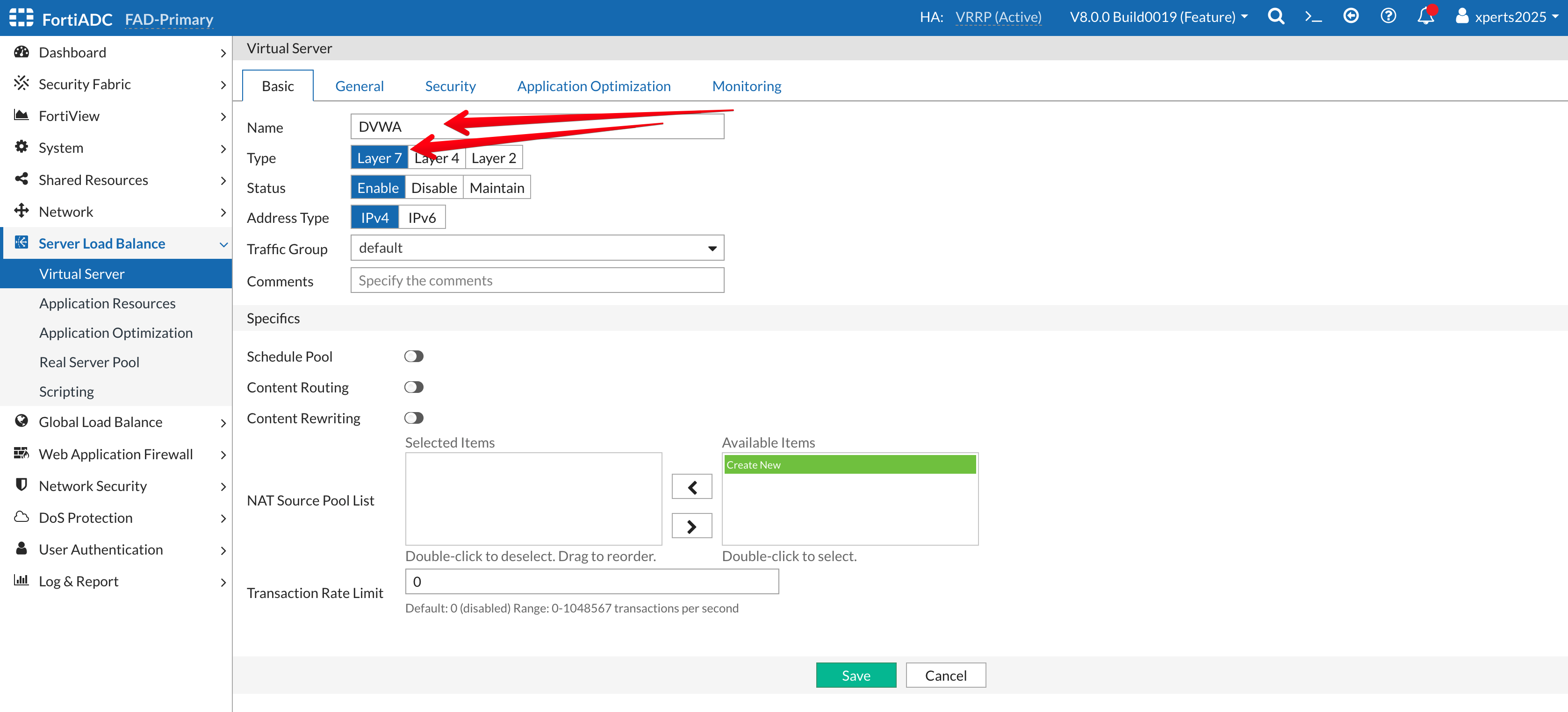The next step is to configure a virtual server, which defines the type of traffic FortiADC will manage and how it will be processed. For this exercise, we will create two virtual servers, one for each of our web applications, while using the default settings wherever possible.