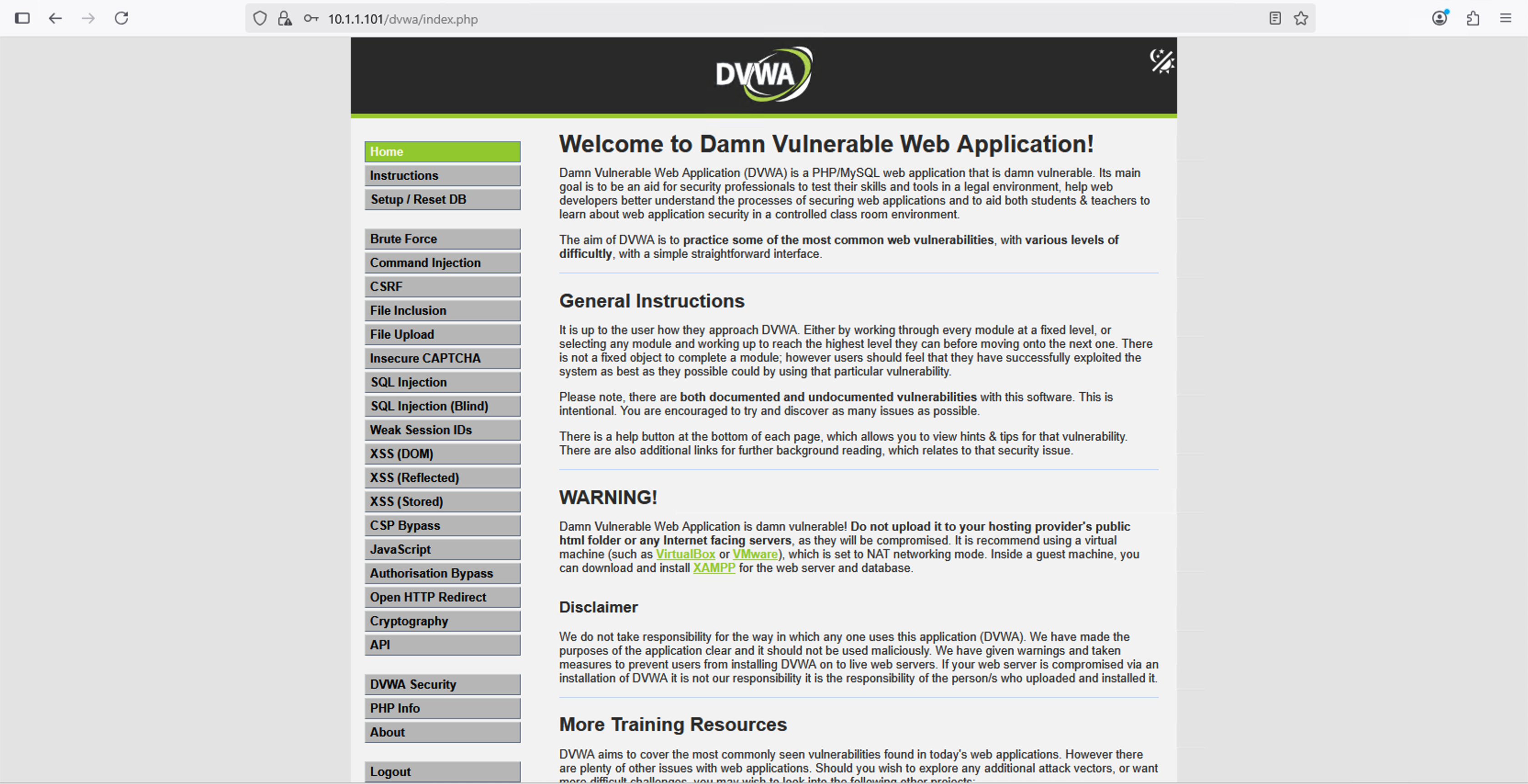 - Open Firefox and go to the DVWA application: https://10.1.1.101/dvwa
