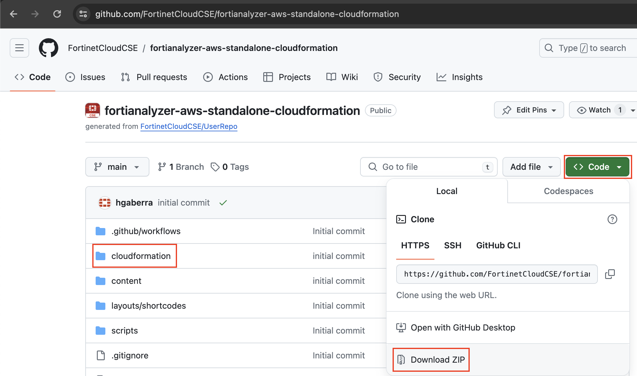 - To download the template, you can either clone the repo with the git command below, or download the repo as a ZIP archive. The template is in the /cloudformation folder